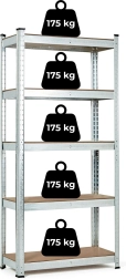 Stabilan i izdržljiv regal ModernHome s 5 polica od MDF ploča idealan je za pohranu alata, autodijelova i vrtnog pribora te ima nosivost 175 kg po polici.