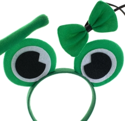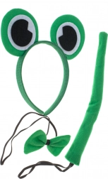 Ovaj razigrani žablji set u trenu će pretvoriti vaše dijete u simpatičnu žabicu. U pakiranju se nalazi sve potrebno za brzo prerušavanje: trak za kosu s velikim žabljim očima, zeleni leptir i rep. Zahvaljujući univerzalnim dimenzijama i mekoj tkanini, dodaci su udobni za nošenje i lako se kombiniraju s odjećom koju već imate kod kuće.