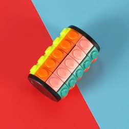 Rotirajući valjak s pet prstenova je zarazna logička igra za djecu i odrasle. Princip je jednostavan: u svakom je redu jedno prazno mjesto zahvaljujući kojem možete pomicati i okretati obojene dijelove te ih slagati u ispravan redoslijed. Na prvi pogled jednostavno, ali zabava za duge sate!