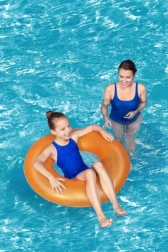 Neonski narančasti plivaći kolut BESTWAY promjera 91 cm savršen je izbor za ljetne radosti. Zahvaljujući čvrstoj PVC konstrukciji i otpornosti na UV zračenje i slanu vodu uživat ćete u pouzdanoj potpori i udobnosti pri plivanju i odmoru na površini vode.