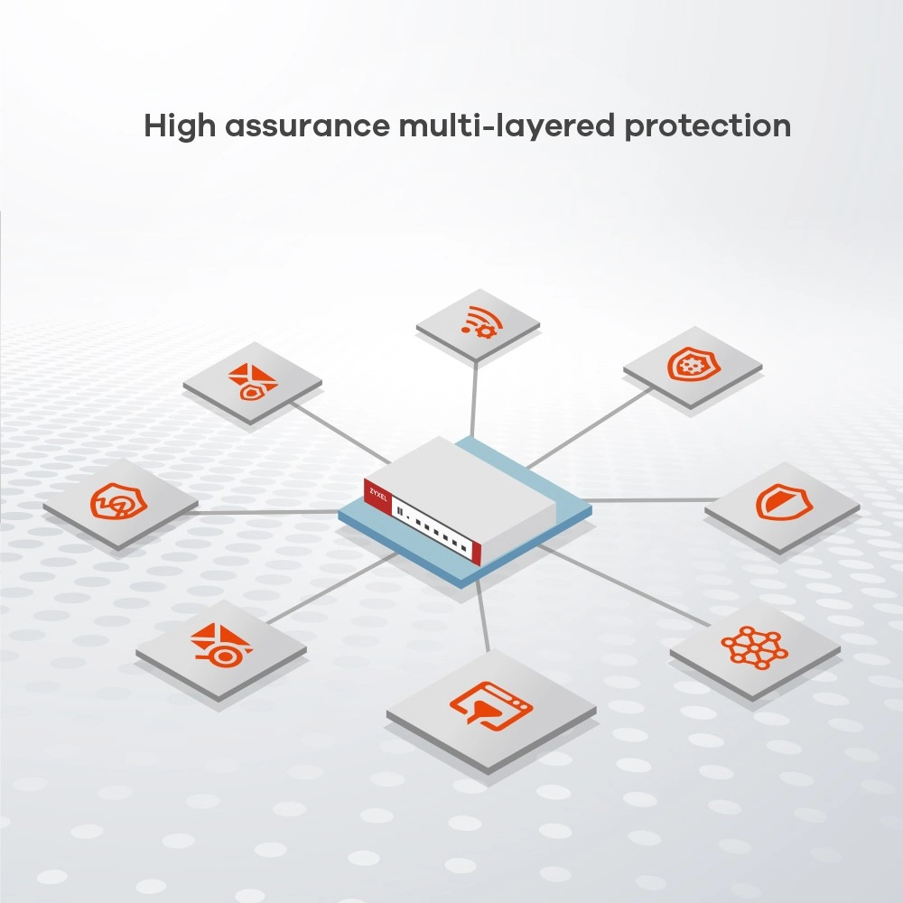 Integracija s Nebula Cloud Managementom omogućuje detaljno postavljanje sigurnosnih politika Zero-Trust Networka za organizacije uz mogućnost autentikacije pristupa i sigurnog Wi-Fi-ja. Napredna inteligencija o prijetnjama integrirana s analizama vodećih tvrtki povećava točnost detekcije putem šire pokrivenosti bazom podataka zlonamjernog softvera.