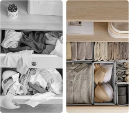 Držite svoje rublje i dodatke uvijek na svom mjestu uz ovaj praktični set organizatora. Sadrži 6 komada različitih veličina koji osiguravaju univerzalnu primjenu i lako čišćenje. Stilska, svijetlosiva izvedba dodaje eleganciju i lako se uklapa u svaki ormar. Svaki je organizer dizajniran da bude stabilan i izdržljiv.