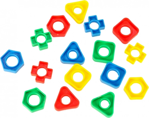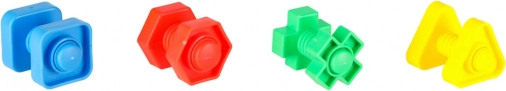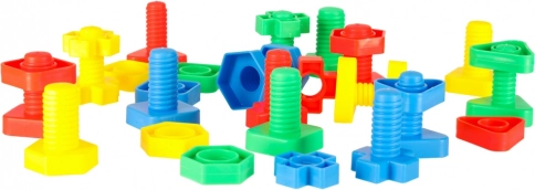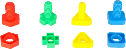Pojedinačni vijci i matice imaju različite oblike koje je potrebno ispravno upariti. Zahvaljujući jednostavnom principu, set je prikladan za predškolce te izvrsno potiče prostornu predstavu i strpljenje.