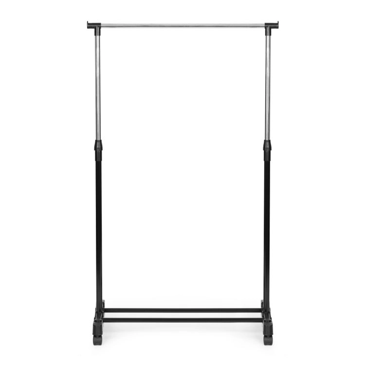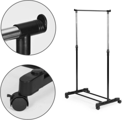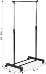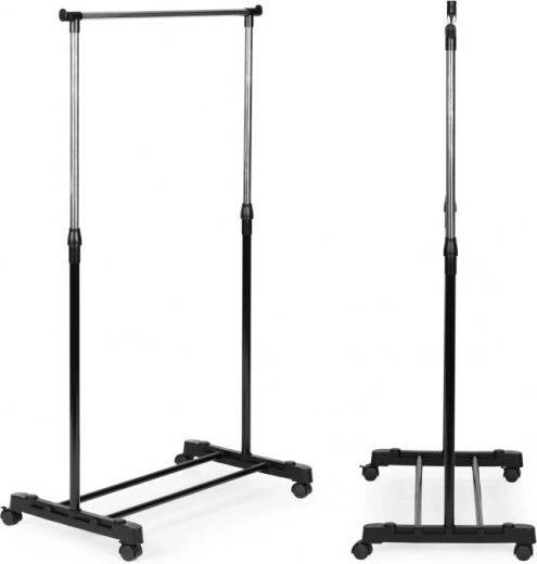 Džepovi na krajevima nosive šipke stalka osiguravaju sigurnost i eliminiraju rizik od neželjenog klizanja i oštećenja odjeće. Šipka također služi kao kuka za vješanje torbi, šalova, šešira i drugih sitnica. Stalak za odjeću opremljen je četiri kotačića, od kojih su dva s osiguračem. To omogućuje jednostavno kretanje i fleksibilnu organizaciju prostora. Prakticno rješenje koje omogućuje lako prilagođavanje stalka vašim potrebama.