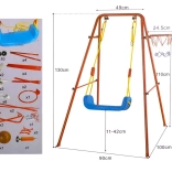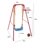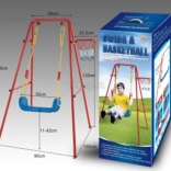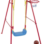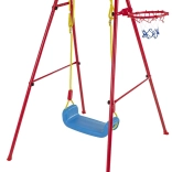 Ova svestrana vrtna ljuljačka spaja omiljeno ljuljanje s košarkaškom zabavom. Stabilni metalni okvir s promjerom cijevi oko 2,5 cm i čvrsto uže drže široko plastično sjedalo (cca 43 × 25,5 cm) za udobnu i sigurnu upotrebu. Dio kompleta je košarkaški koš koji se lako pričvršćuje na okvir, kao i mini lopta i pumpica za trenutnu igru.