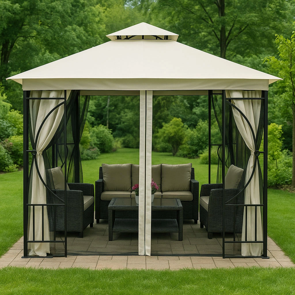 Pretvorite svoj vrt u ugodan prostor za opuštanje s čvrstim natkrivenim paviljonom. Ovaj krov pruža učinkovitu zaštitu od sunca i kiše te omogućuje produženje sezone boravka u vrtu. Idealan za roštiljanje, vrtne proslave ili opuštanje uz knjigu. S ovim krovom uživat ćete u vrtu od proljeća do jeseni!