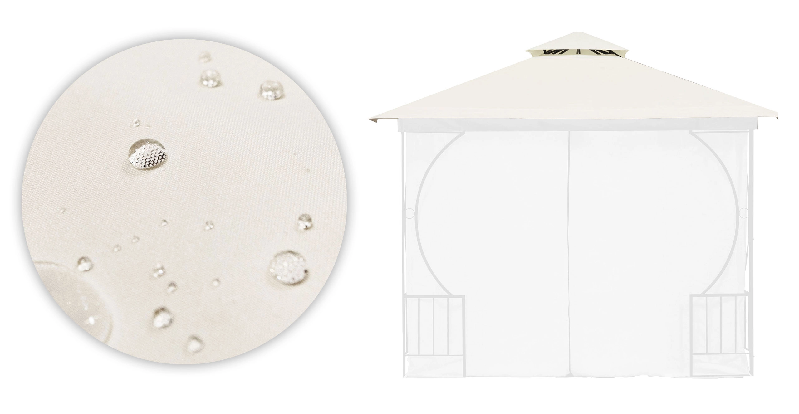 Krov je izrađen od čvrstog poliestra gustoće 180 g/m², koji osigurava veću otpornost na kidanje, habanje i vremenske uvjete. Idealan je za vanjsku upotrebu, vodootporan, UV-otporan i zaštićen od rasta plijesni.