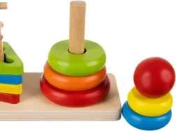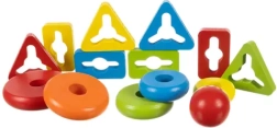 Upoznajte se s tri osnovna oblika: krug, trokut i pravokutnik. Igračka sadrži podlogu i mnoštvo dijelova kojima se može lako rukovati i slagati.