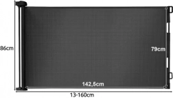 Izvlačna branka funkcionira kao fleksibilna roleta od čvrste mrežice koja omogućuje vidljivost i protok zraka, a ujedno stvara sigurnu barijeru. Zahvaljujući jednostavnoj montaži na zid i kuki na suprotnoj strani, otvarate je i zatvarate jednom rukom, a nakon namatanja gotovo ne zauzima prostor.