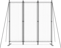 Čvrste spojnice panela omogućuju jednostavno sklapanje i rasklapanje pregrade. Stabilna metalna baza ima praktične montažne otvore za dodatno učvršćivanje pregrade za tlo. Zahvaljujući širokoj potpori, raspodjela težine je ravnomjerna i sprječava prevrtanje, čak i na neravnoj podlozi. Pribor za montažu povećava stabilnost i sigurnost korisnika time što pregrada ostaje stabilna i u vjetrovitim uvjetima.