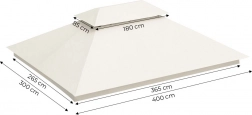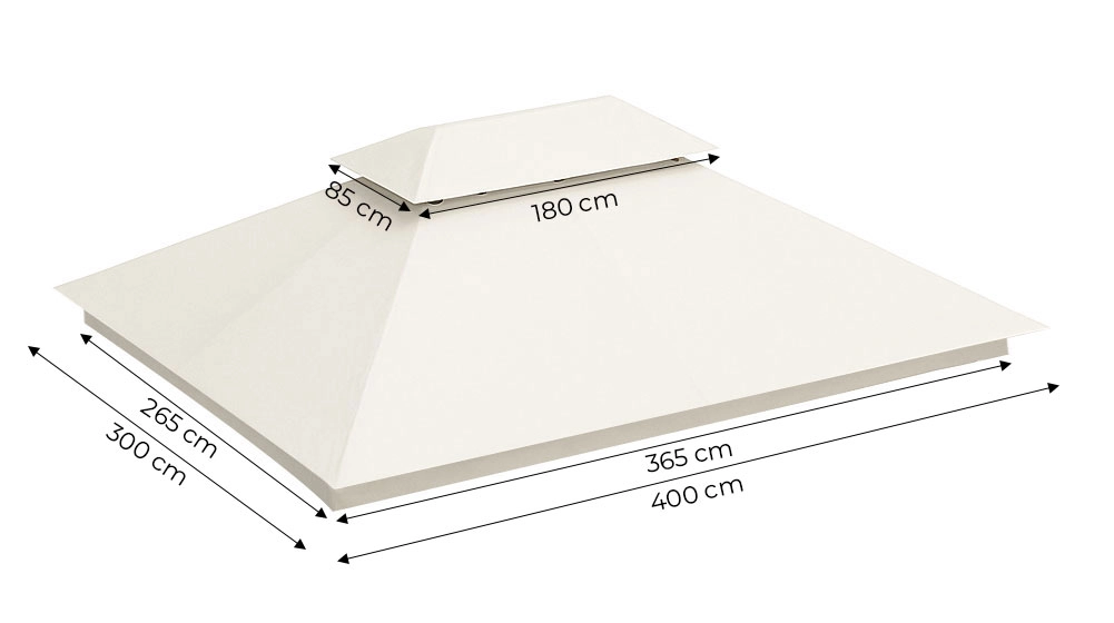 Zamjenski krov za vaš vrtni paviljon dimenzija 3x4 m nudi izvrsnu zaštitu zahvaljujući vodootpornoj i UV-otpornoj poliesterskoj tkanini 180 g/m². Odličan je za vrtná događanja, roštiljanje ili opuštajuća popodneva, produljit će vašu vrtnu sezonu od proljeća do jeseni!