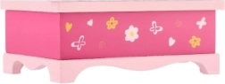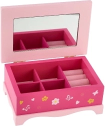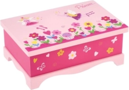 Ova ružičasta drvena kutijica za nakit Princess spaja čaroban izgled s praktičnom organizacijom. Zahvaljujući zrcalcu na unutarnjoj strani poklopca i pet promišljenih pretinaca pomaže održati nakit i sitnice lijepo posloženima. Nježna cvjetna dekoracija i natpis Princess stvaraju bajkovitu atmosferu koja se savršeno uklapa u dječju sobu.