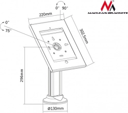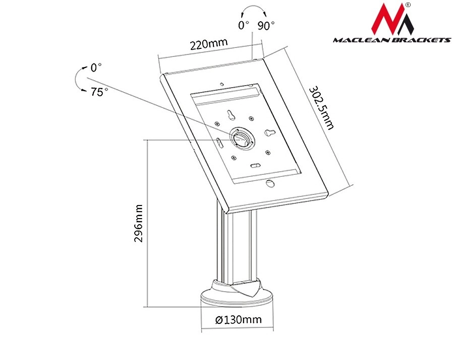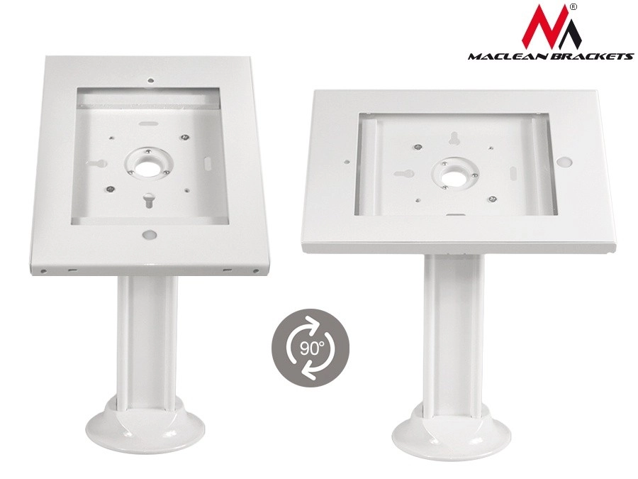 Reklamni stalak držač tableta za iPad 2/3/4/Air/Air2 pruža visoku kvalitetu izrade i sigurnost zahvaljujući čeličnoj bazi s montažnim otvorima. Nudi mogućnost postavljanja tableta vodoravno i okomito.