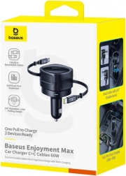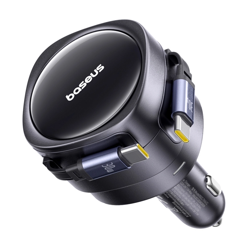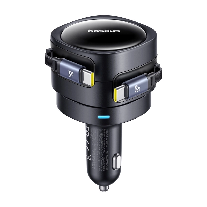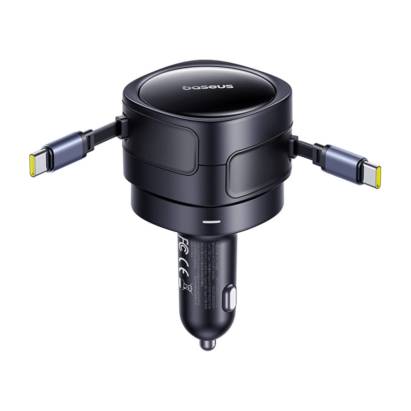 Punjač za auto Baseus nudi kompaktan i elegantan dizajn, idealan za sveobuhvatnu upotrebu u automobilu. S dvostrukim USB-C kabelima duljine 80 cm omogućuje punjenje dva uređaja istovremeno bez zapetljanih kabela zahvaljujući rotirajućem mehanizmu do 180°.