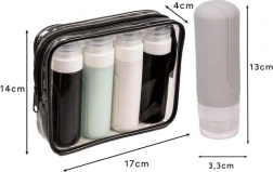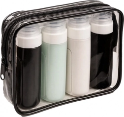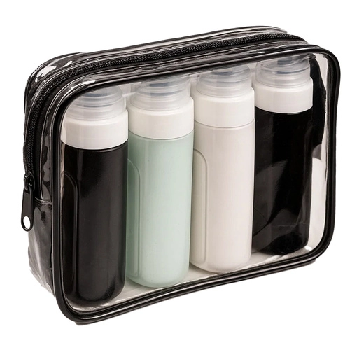 Predstavljamo praktičan putni kozmetički set marke Trizand, savršen za sve vaše potrebe na putu. Sastoji se od četiri silikonske bočice i prozirne vodonepropusne torbice koja ispunjava TSA/IATA standarde za prijevoz tekućina u ručnoj prtljazi. Nema više brige o prolivenom šamponu u koferu!