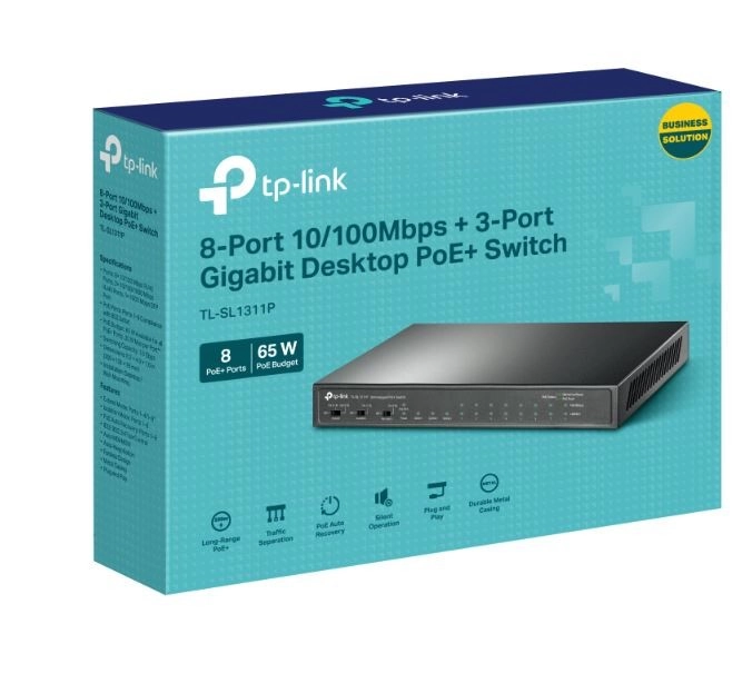 Prekidač SL1311P nudi 8 PoE+ portova za prijenos podataka i napajanje, zajedno s 2 gigabitna i 1 SFP portom za brzu povezivost bez potrebe za složenom instalacijom.