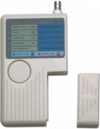 Ovaj tester kabela 4 u 1 učinkovito testira kabele tipa RJ11, RJ45, USB i BNC jednim pritiskom na gumb. Opremljen je LED diodama za signalizaciju veze i mogućih pogrešaka.