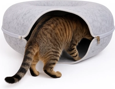 Tunel za mačke PURLOV idealan je izbor za svakog vlasnika mačke koji svom ljubimcu želi priuštiti udobno i toplo skrovište. Ergonomski dizajn i mekani filcani materijal osigurat će da se vaša mačka osjeća kao u vlastitom kraljevstvu.