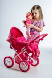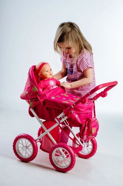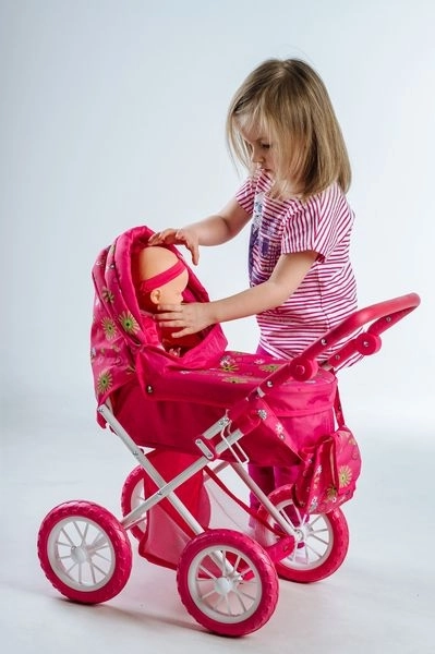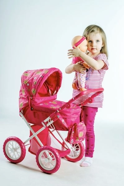 Ova prekrasna kolica za lutke donose radost svakoj maloj mami. S prostorom za pohranu na dnu uvijek možete imati sve potrebno pri ruci. Stilska torba sa strane kolica idealna je za igračke i druge potrepštine.