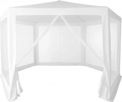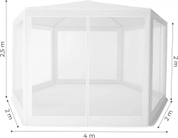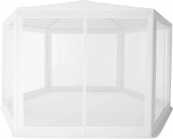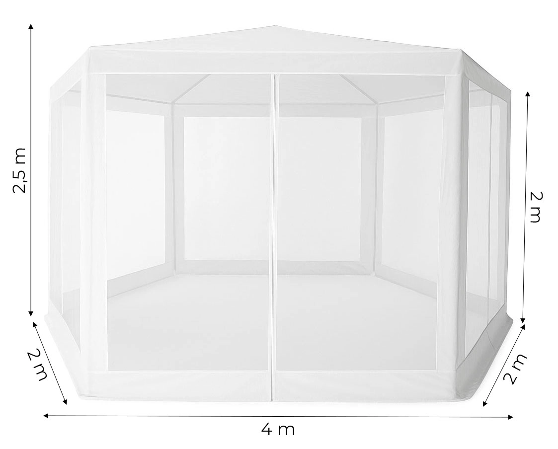 Stabilna metalna konstrukcija i šest stijenki s mrežom protiv komaraca doprinose udobnoj i sigurnoj uporabi. Praktičan ulaz na patentni zatvarač omogućuje brz pristup unutrašnjosti paviljona.