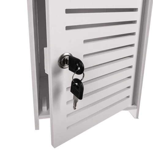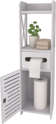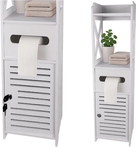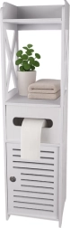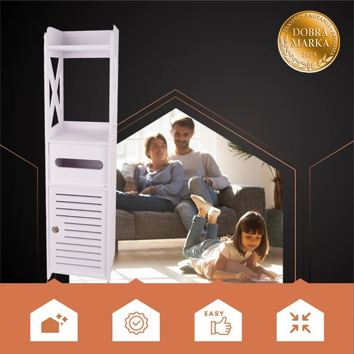 Samostojeći kupaonski ormarić u bijeloj boji je praktično rješenje za pohranu kozmetike i sredstava za čišćenje. Zahvaljujući zaključavanju na ključ štiti sadržaj od djece te ima estetski dizajn koji pristaje svakoj kupaonici.