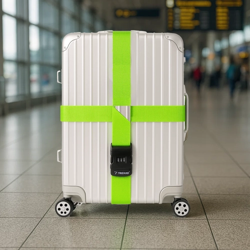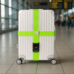 Osim što ovaj remen nudi praktičnu opciju pričvršćivanja "na križ", također zahvaljujući svojoj jasno zelenoj izvedbi lako prepoznajete svoju prtljagu na traci.