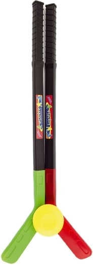 Set sadrži dvije palice i plastični pak – sve potrebno za brzu igru u dvorištu, na igralištu ili u dnevnoj sobi. Zahvaljujući pakiranju u mrežici, set je lako prenosiv i brzo pospremljen.