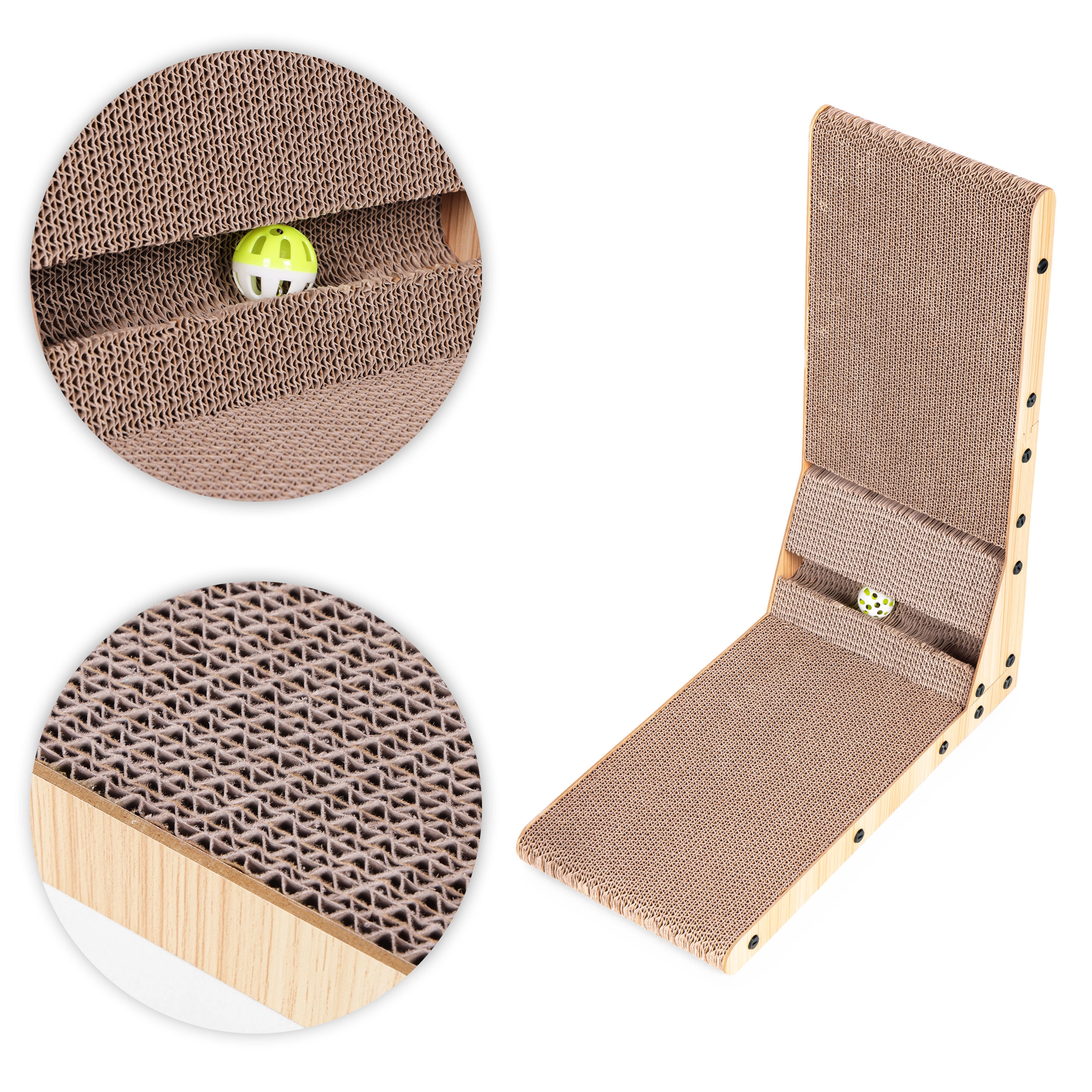Kutna kartonska grebalica Petsi idealna je za vlasnike mačaka koji žele svojim ljubimcima pružiti udobnost i istodobno zaštititi dom od oštećenja. Dvorazinska L-forma mačkama omogućuje igru i odmor. Proizvod potiče prirodno ponašanje mačaka, smanjuje napetost i pomaže trošiti višak energije.