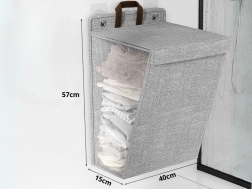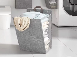 Lagana i čvrsta tkanina otporna na prljanje olakšava održavanje. Integrirane ručke omogućuju jednostavno skidanje košare i prenošenje do perilice. Nakon upotrebe brzo se sklapa u ravninu i sprema u ormar ili iza vrata.