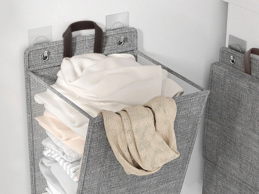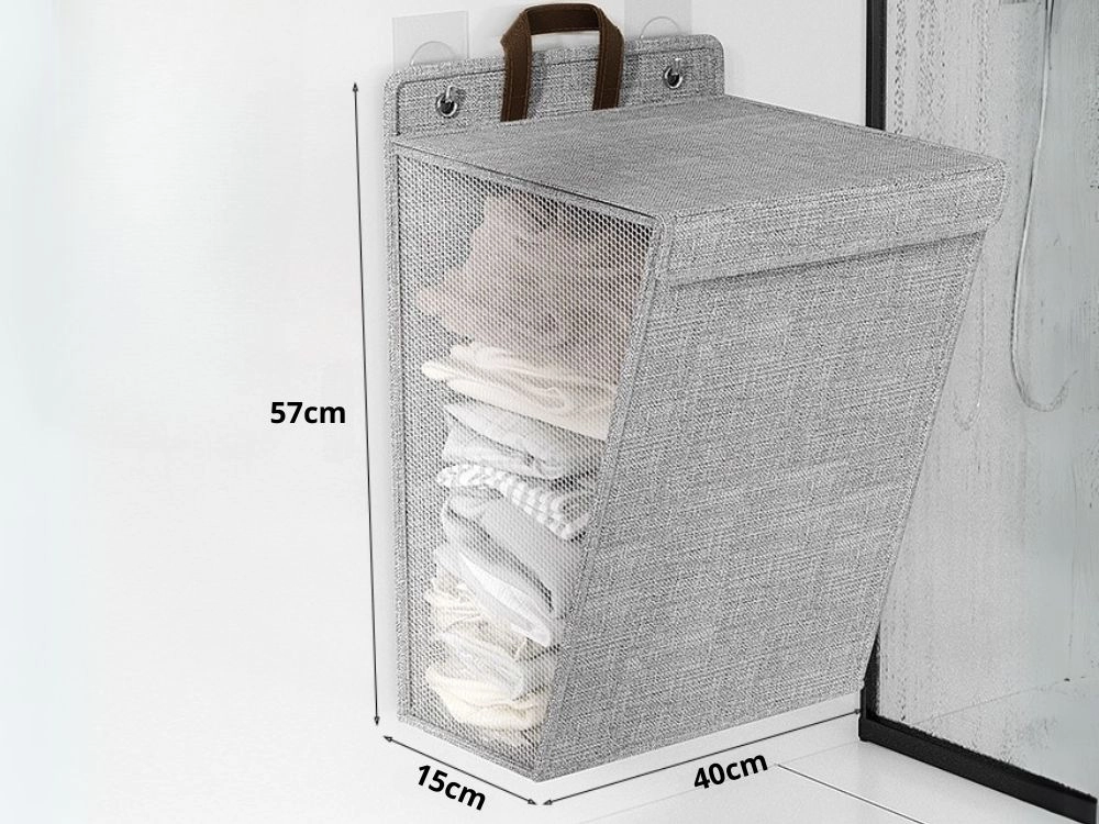 Elegantna siva košara za rublje osmišljena je za male kupaonice, garderobe i praonice. Mogućnost vješanja na zid ili vrata učinkovito štedi prostor, dok ojačane stranice zadržavaju oblik i pri punom opterećenju. Prozračna mrežica potiče cirkulaciju zraka, pa rublje ne ustajava.