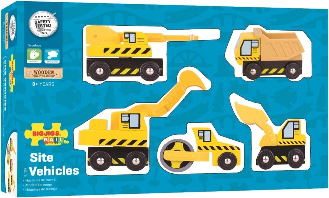 Set Bigjigs Rail građevinski strojevi za drvene željezničke pruge. 5 kom, drvo i magneti, kompatibilno s većinom setova. Sigurno, kvalitetno, za djecu od 3 godine.