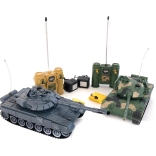 Uživajte u akcijskoj tenkovskoj bitki s kompletom od dva RC tenka u mjerilu 1:28. Svaki tenk ima rotirajuću kupolu od 330°, realistične zvučne efekte, svjetlosne efekte, evidenciju “života” i savladava uspon od 45°. Daljinski upravljači rade na odvojenim frekvencijama 27/40 MHz za nesmetan dvoboj. U pakiranju su punjive baterije za tenkove i baterije za upravljače, pa možete igrati odmah nakon raspakiravanja.