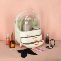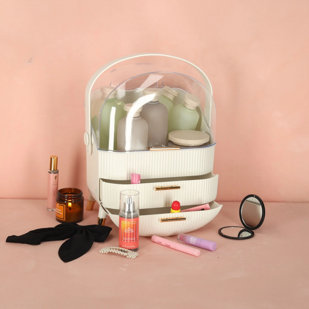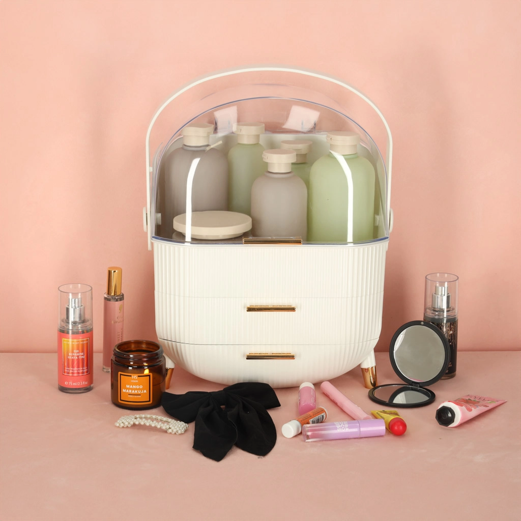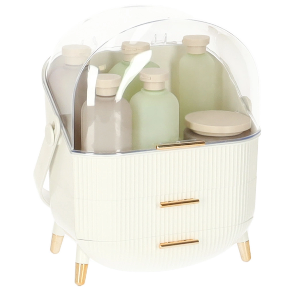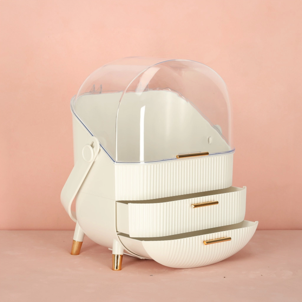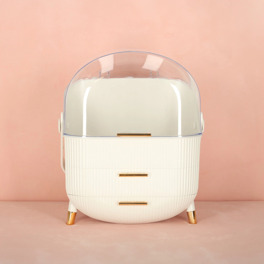 Prozirni poklopac izlaže vaše kozmetičke proizvode u elegantnom stilu i istovremeno ih štiti od prašine. Suptilni zlatni detalji pridaju luksuz.