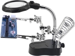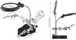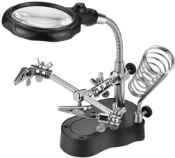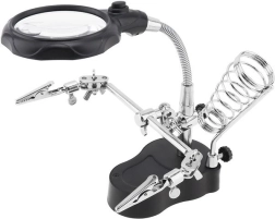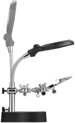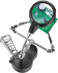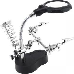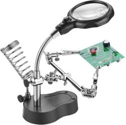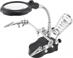 Stolno osvjetljenje s fleksibilnom trećom rukom i kružnim svjetlom sa 16 LED za optimalno osvjetljenje radnog područja. Zahvaljujući držaču lemilice i žičanoj zavojnici, idealan je za lemljenje i omogućuje vam uvijek imati jednu ruku slobodnu.