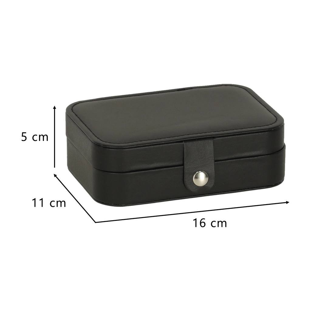 Izdržljiva površina u crnoj boji, čvrsto kopčanje na druker i precizni šavovi. Nakit ostaje siguran kod kuće i na putu, bez ogrebotina i gubitaka.