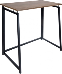 Crni metalni okvir s A-profilom i ploča u drvenom dekoru stvaraju minimalistično i izdržljivo radno okruženje.