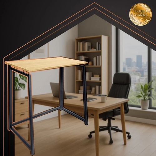 Kompaktni sklopivi stol RUHHY u industrijskom stilu spaja uštedu prostora, brzo sklapanje u par sekundi i stabilnu metalnu konstrukciju s drvenim dekorom. Idealan za rad od kuće, učenje i male stanove.