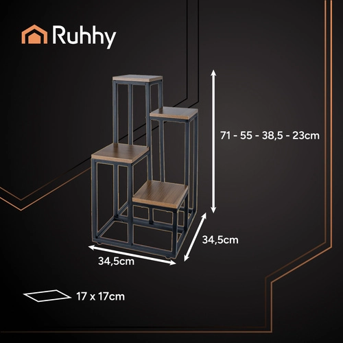 Stilni stalak za cvijeće RUHHY je četverorazinska konstrukcija, koja omogućuje izlaganje više biljaka na malom prostoru. Moderan dizajn s metalnim okvirom i drvenim policama uklapa se u svaki interijer. Stabilna i robusna struktura može nositi do 50 kg opterećenja i opremljena je zaštitom poda pomoću nivelirajućih nožica.