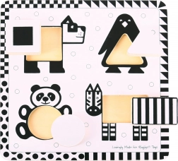 Crno-bijele umetaljke BIGJIGS TOYS osmišljene su posebno za najmlađu djecu. Kontrastna izvedba pomaže bebama bolje fokusirati i uočavati oblike, dok se četiri velika drvena dijela s motivima životinja lako umeću u pripadajuće otvore.