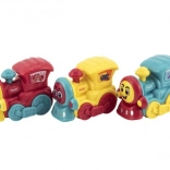 Dovoljno je lagano pogurnuti vlakić i sam će se pokrenuti. Vesele boje privlače pozornost i potiču maštu pri igri željezničkih avantura kod kuće i na putu.