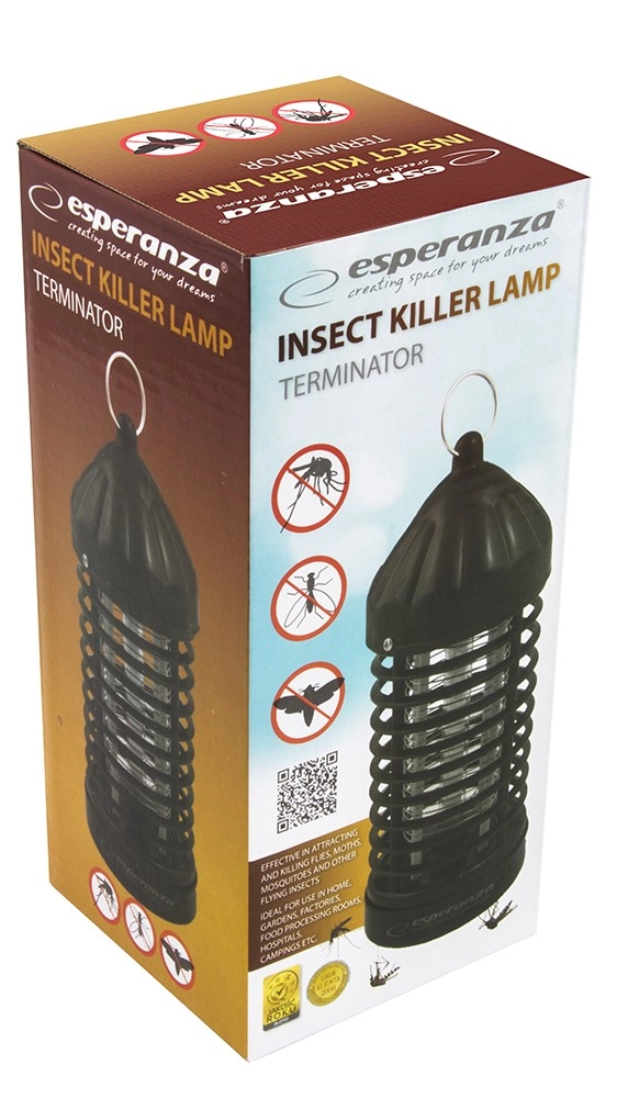 Lampa za insekte Esperanza Terminator učinkovito privlači muhe, moljce, komarce i druge leteće insekte kako bi ih brzo eliminirala. Bez upotrebe kemikalija ili aerosola i bez mirisa.