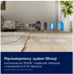 S jedinstvenom PowerPro četkom za više površina, koja je prikladna za različite vrste površina, postižete učinkovito prikupljanje finih čestica prašine s učinkovitošću do 99 %* na tvrdim podovima. Potpuno čišćenje svakim pokretom u svakom kutku.
