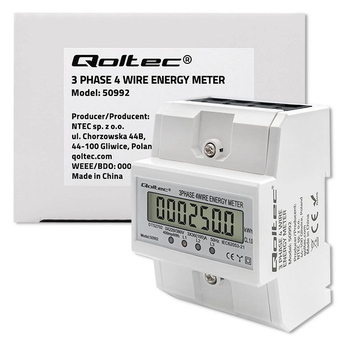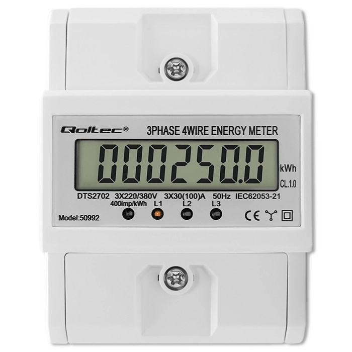 Ovaj elektronički mjerač potrošnje energije omogućuje precizno praćenje korištenja energije u trofaznim električnim sustavima s naponom 230V/400V pri frekvenciji 50Hz. LED indikator signalizira tijek potrošnje, dok LCD zaslon prikazuje podatke o potrošenoj energiji. Mjerenje se provodi na temelju broja impulsa s frekvencijom 400 impulsa/kWh.