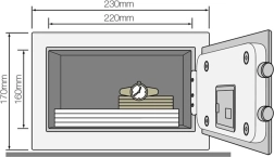 U opremu također spadaju dva mehanička ključa, koja služe kao hitno rješenje za otvaranje sejfa bez korištenja koda. Sejf je dizajniran s indikatorom niskog stanja baterije, što omogućuje pravodobnu zamjenu baterija i osigurava da sejf bude uvijek potpuno funkcionalan.
