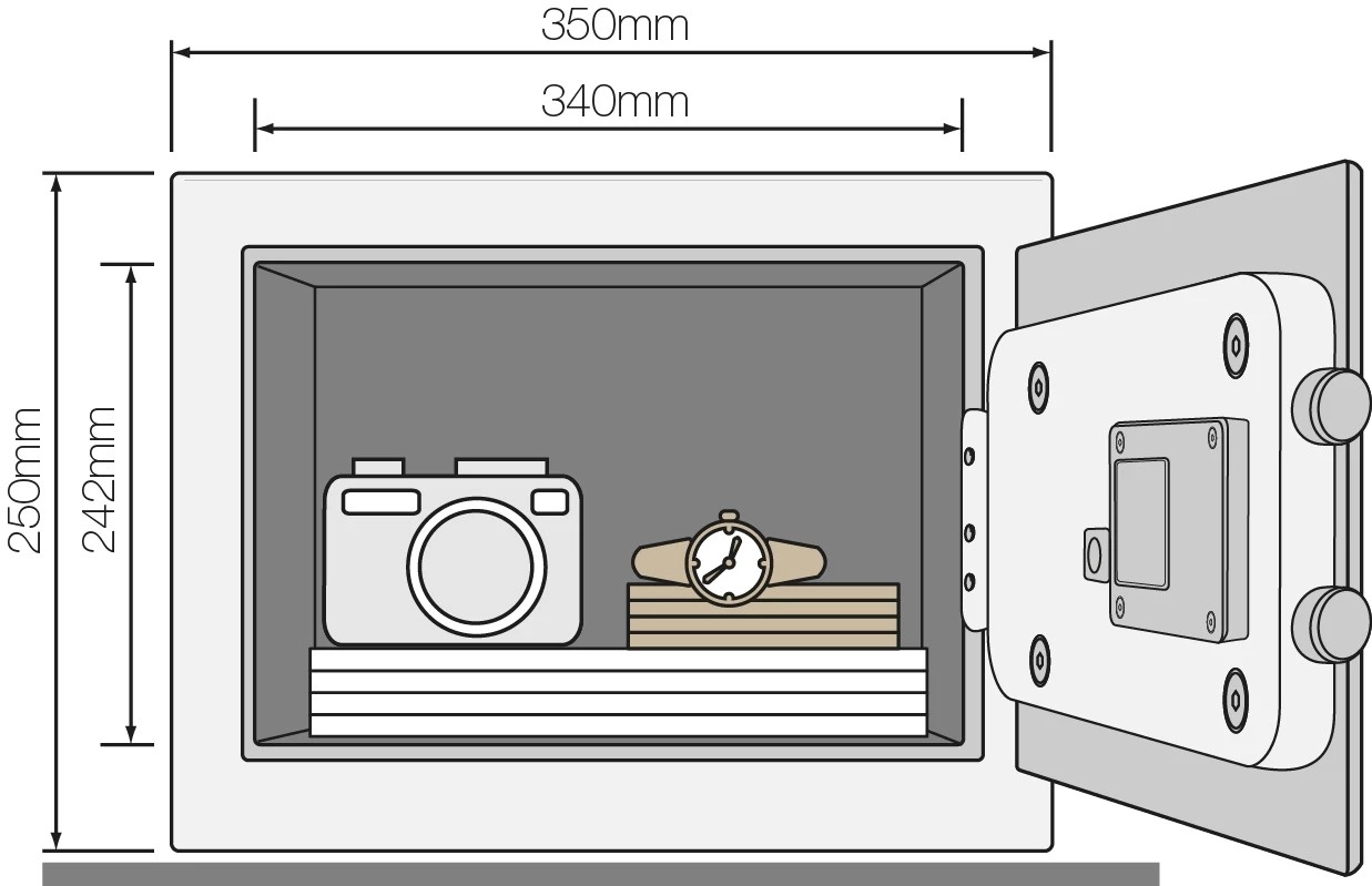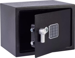 Zaštitite svoje dragocjenosti s jednostavnim upravljanjem pomoću osobnog koda i mogućnostima do 100.000 kombinacija. Ovaj sef je izrađen od izdržljivog čelika i sadrži vremensko blokiranje ako dođe do tri pogrešna pokušaja unosa koda.