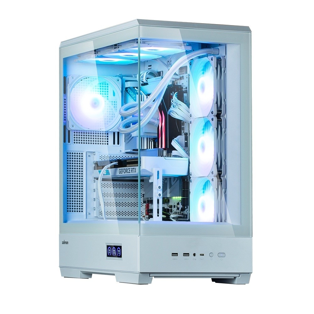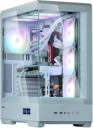 Otkrijte prošireno bijelo PC kućište koje donosi moderan i čist dizajn na vaš radni stol. Opremljeno s dva bezokvirna panela od kaljenog stakla omogućuje jedinstven pogled na konfiguraciju.