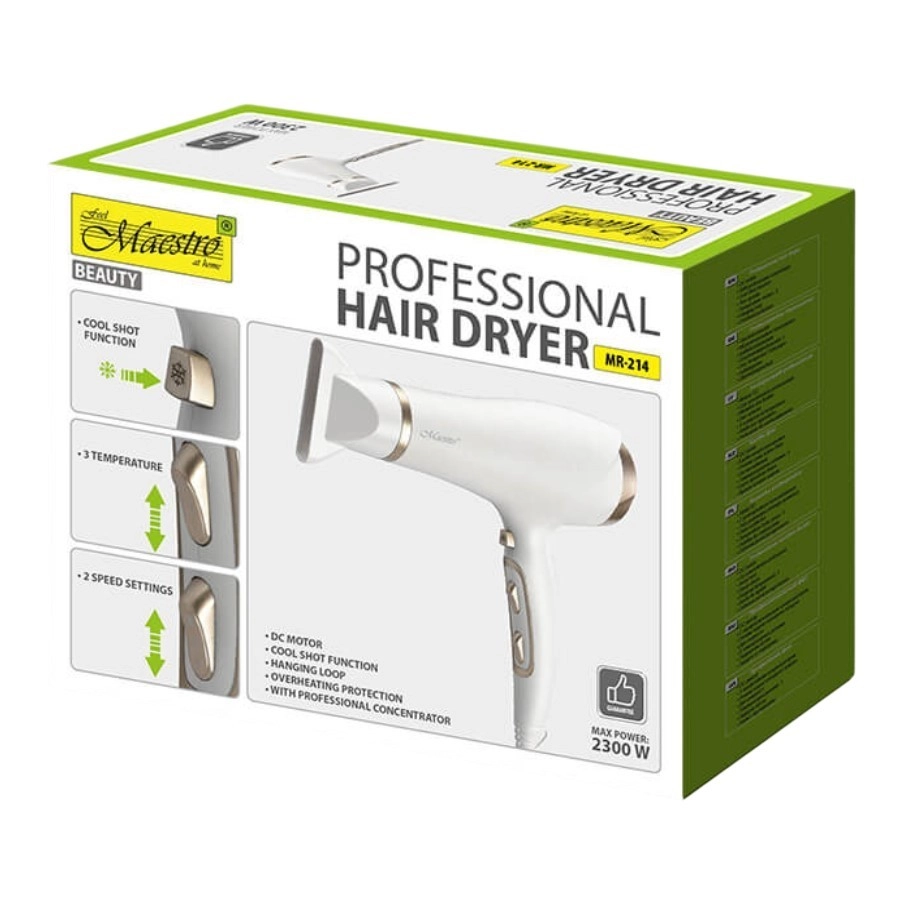 Sušilo je opremljeno koncentratorom za precizno usmjeravanje strujanja zraka, što olakšava precizno stiliziranje. Nudi 2 brzine puhanja i 3 postavke temperature, koje omogućuju prilagodbu vašim individualnim potrebama i tipu kose.