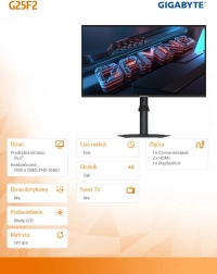 Monitor Gigabyte G25F2 je dizajniran za igrače koji trebaju visoke performanse i točnu reprodukciju boja. Zahvaljujući IPS panelu osigurava široke kutove gledanja i žive boje.