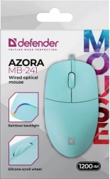 Pakiranje s mišem Defender Azora u plavoj boji ističe učinkovitost s 1200 DPI i izvrsnim silikonskim kotačićem za pomicanje.