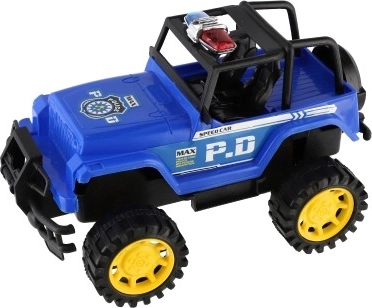 Robustan off-road dizajn s visokim ovjesom i naglašenim kotačima daje vozilu sigurnost na „terenu” dječje sobe i u vrtu. Policijski izgled s upadljivim natpisima potiče igru uloga i razvija maštu. Zahvaljujući inercijskom pogonu dovoljno je auto lagano gurnuti i krenut će naprijed bez potrebe za baterijama.